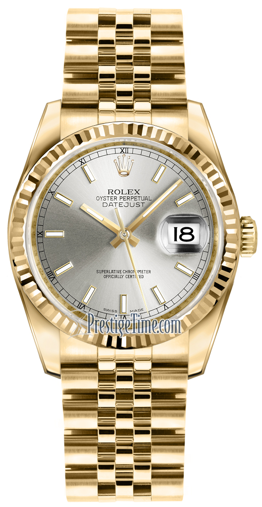 Midsize Rolex 116238 Silver Index Jubilee Datejust 36mm Yellow Gold Watch
