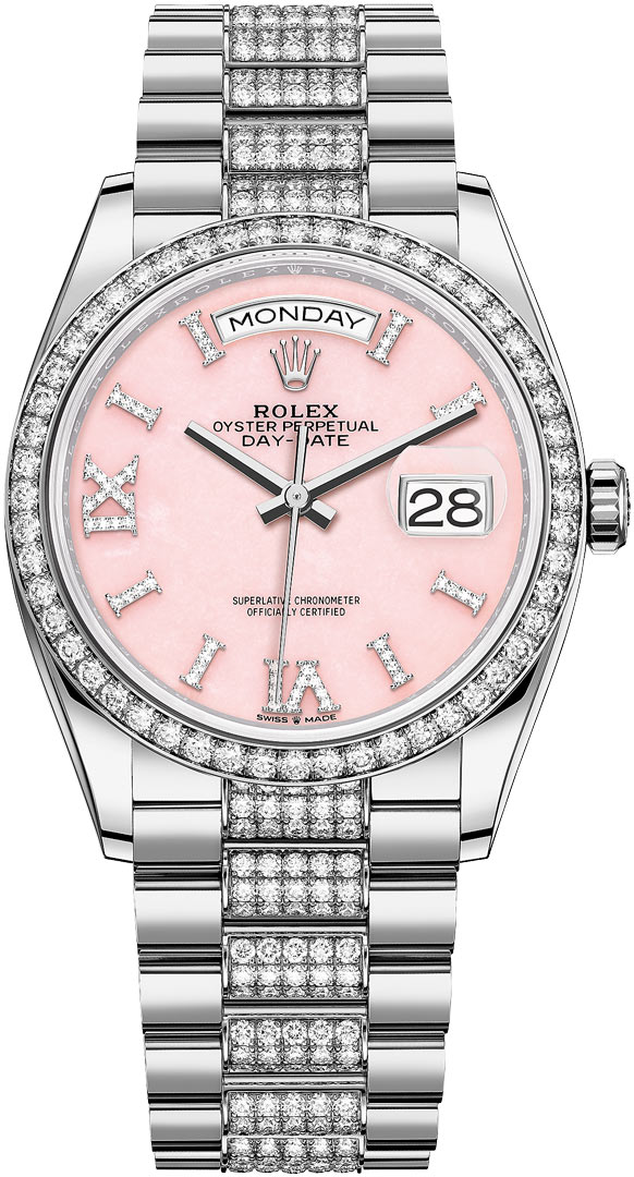Midsize Rolex 128349RBR Pink Opal DB Day-Date 36mm White Gold Watch