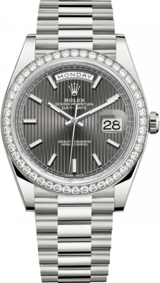 Mens Rolex 228349RBR Dark Rhodium Stripe Index Day-Date 40mm White Gold Watch