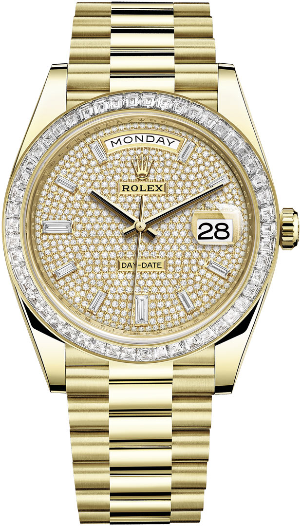 Mens Rolex 228398TBR Pave Baguette Day-Date 40mm White Gold Watch