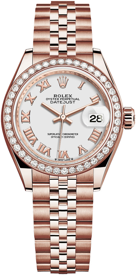 Ladies Rolex 279135RBR White Roman Jubilee Lady Datejust 28mm Everose Gold Watch