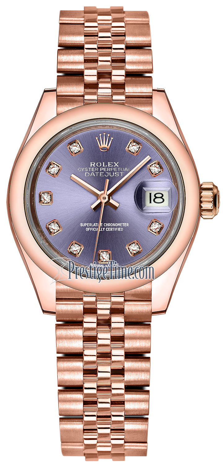 Ladies Rolex 279165 Aubergine Diamond Jubilee Lady Datejust 28mm Everose Gold Watch