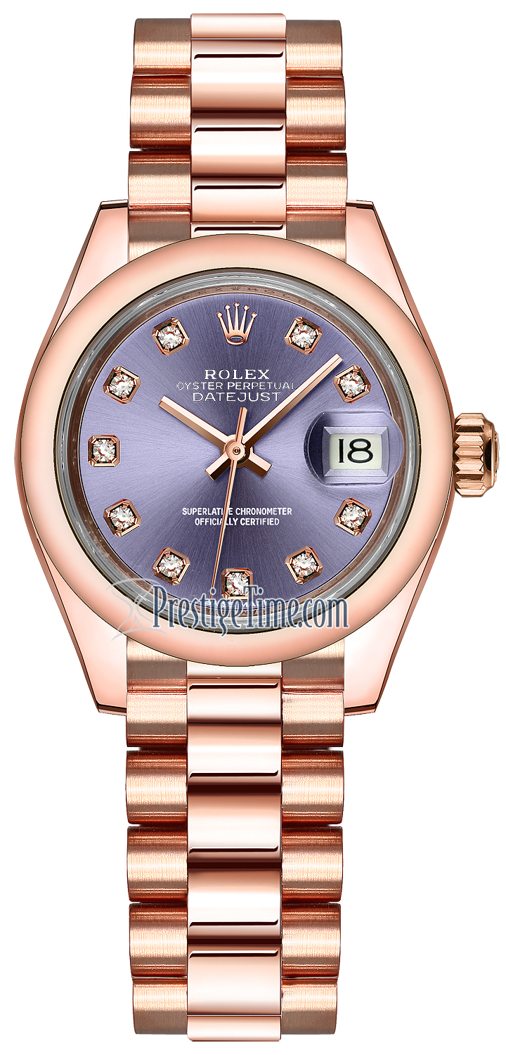 Ladies Rolex 279165 Aubergine Diamond President Lady Datejust 28mm Everose Gold Watch