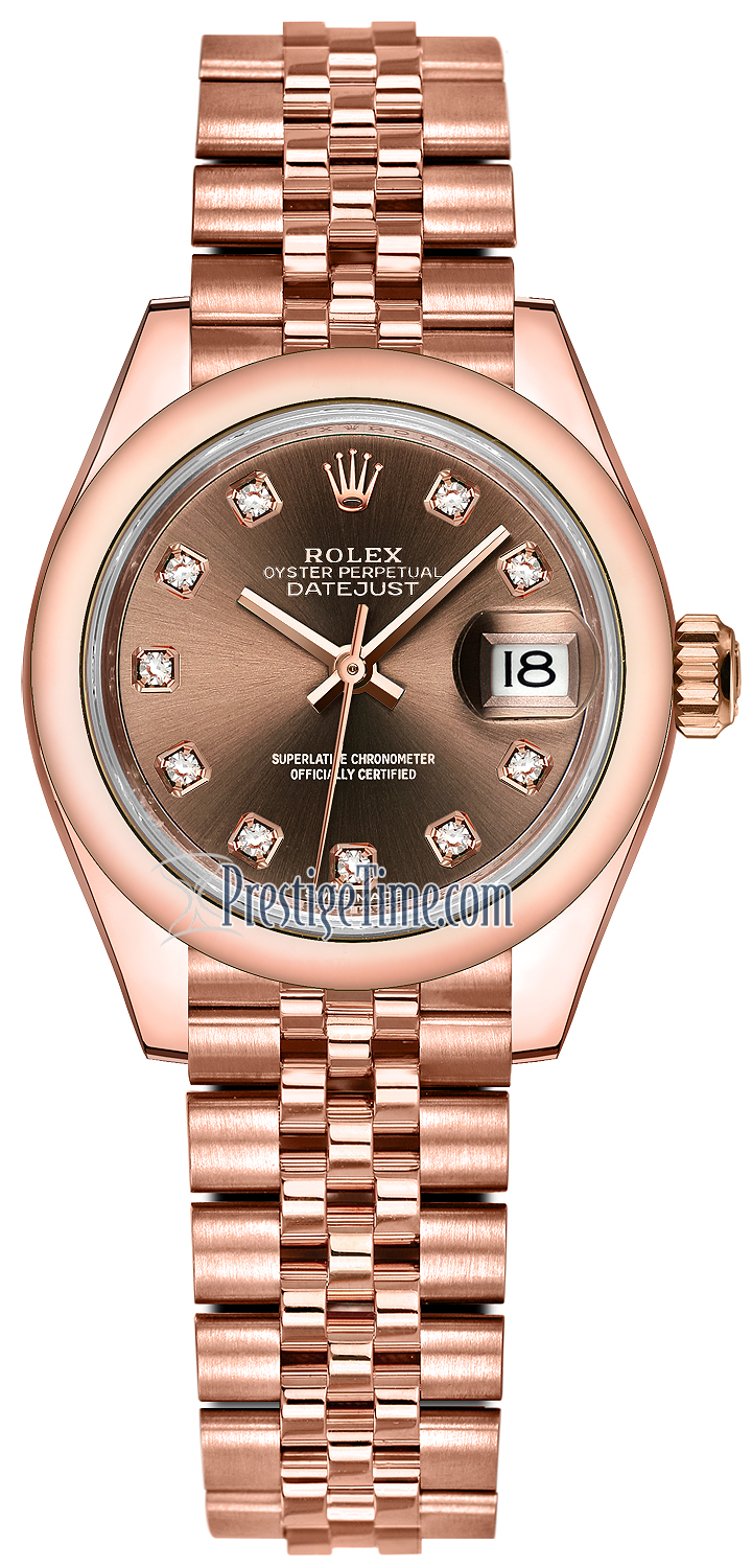 Ladies Rolex 279165 Chocolate Diamond Jubilee Lady Datejust 28mm Everose Gold Watch