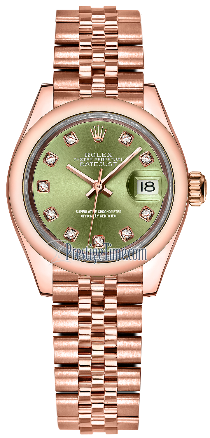 Ladies Rolex 279165 Olive Green Diamond Jubilee Lady Datejust 28mm Everose Gold Watch