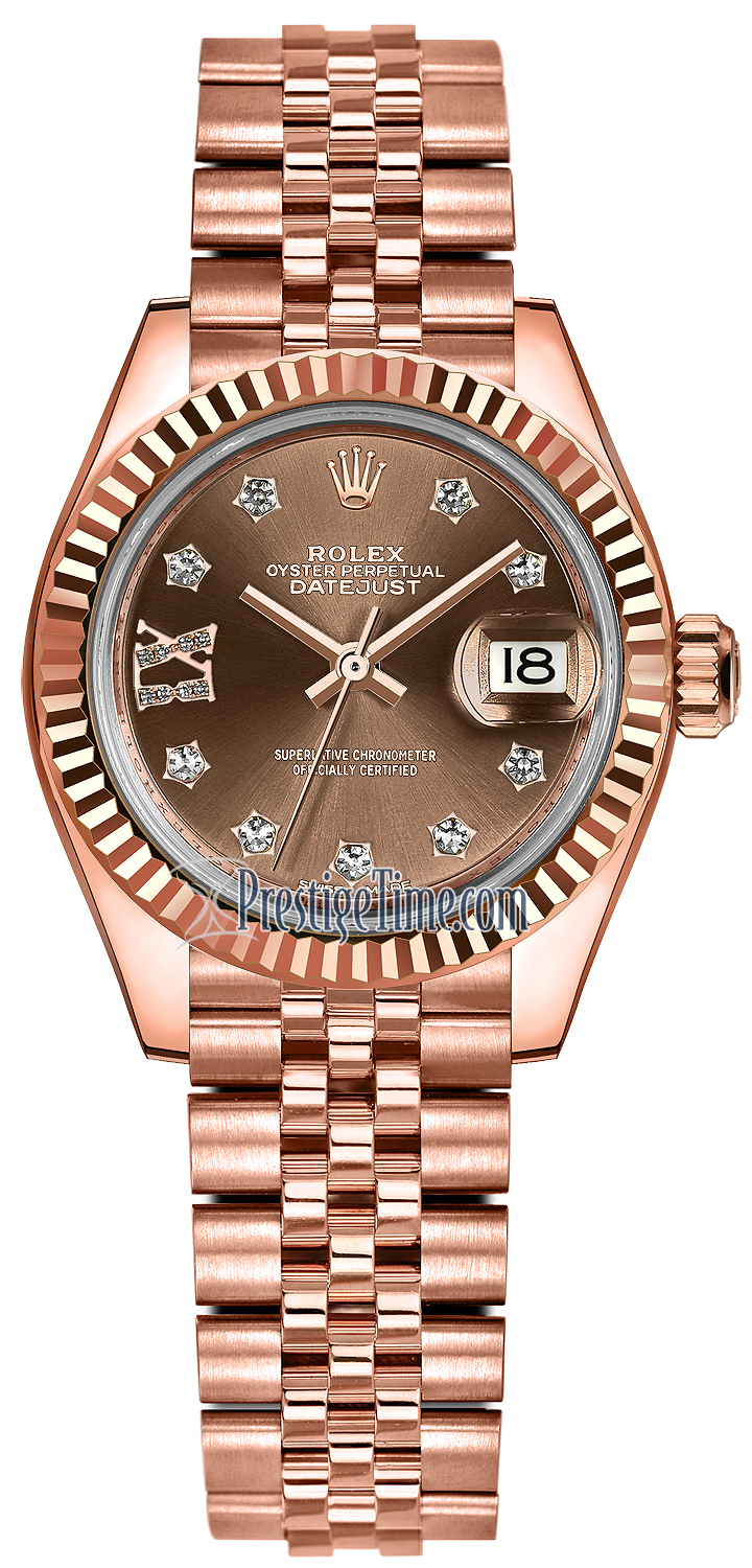 Ladies Rolex 279175 Chocolate 17 Diamond Jubilee Lady Datejust 28mm Everose Gold Watch