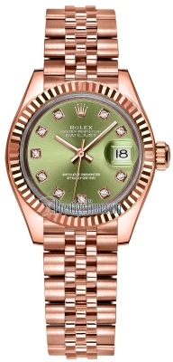 Ladies Rolex 279175 Olive Green Diamond Jubilee Lady Datejust 28mm Everose Gold Watch
