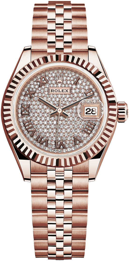 Ladies Rolex 279175 Pave Chocolate Roman Jubilee Lady Datejust 28mm Everose Gold Watch