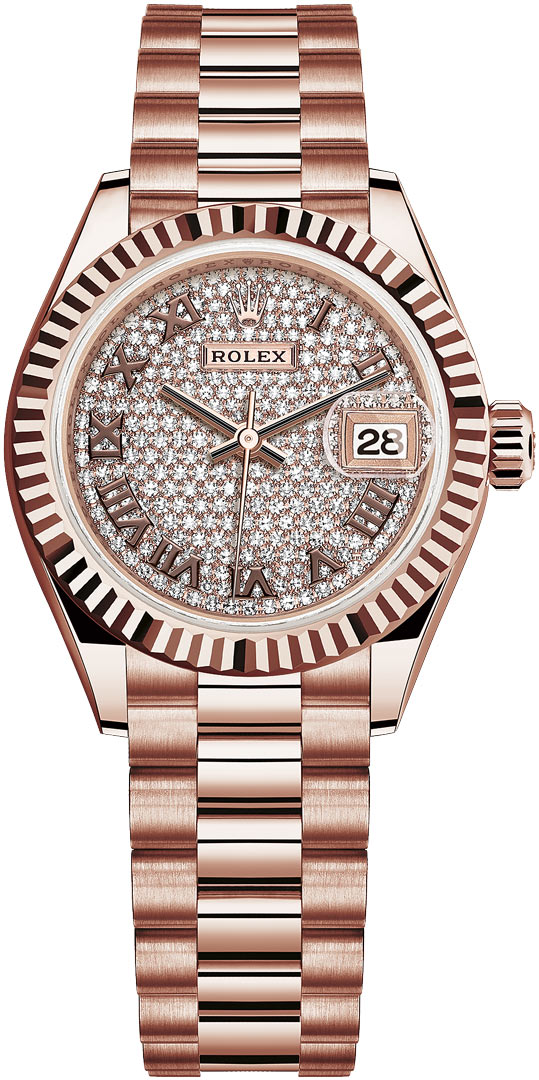 Ladies Rolex 279175 Pave Chocolate Roman President Lady Datejust 28mm Everose Gold Watch