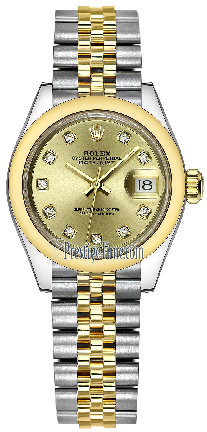 Ladies Rolex 279163 Champagne Diamond Jubilee Lady Datejust 28mm Stainless Steel and Yellow Gold Watch