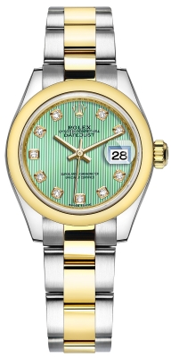 Ladies Rolex 279163 Mint Green Diamond Oyster Lady Datejust 28mm Stainless Steel and Yellow Gold Watch