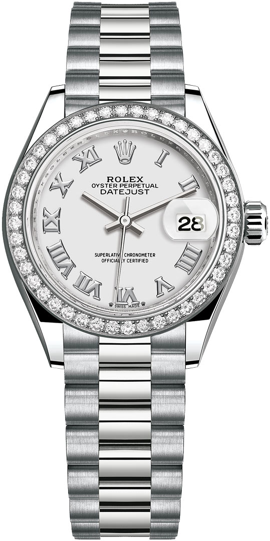 Ladies Rolex 279139rbr White Roman President Lady Datejust 28mm White Gold Watch
