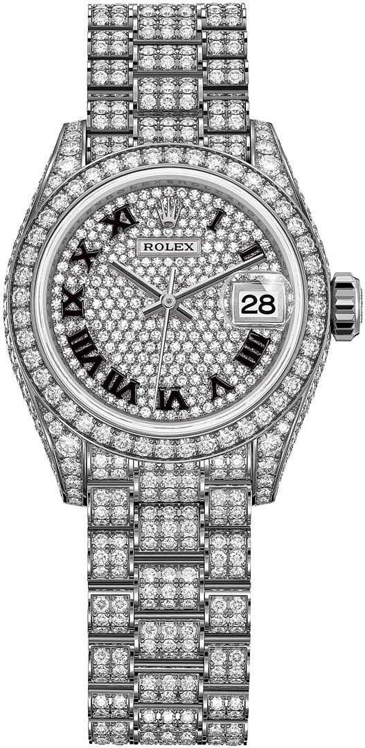 Ladies Rolex 279459rbr Pave Black Roman President Lady Datejust 28mm White Gold Watch