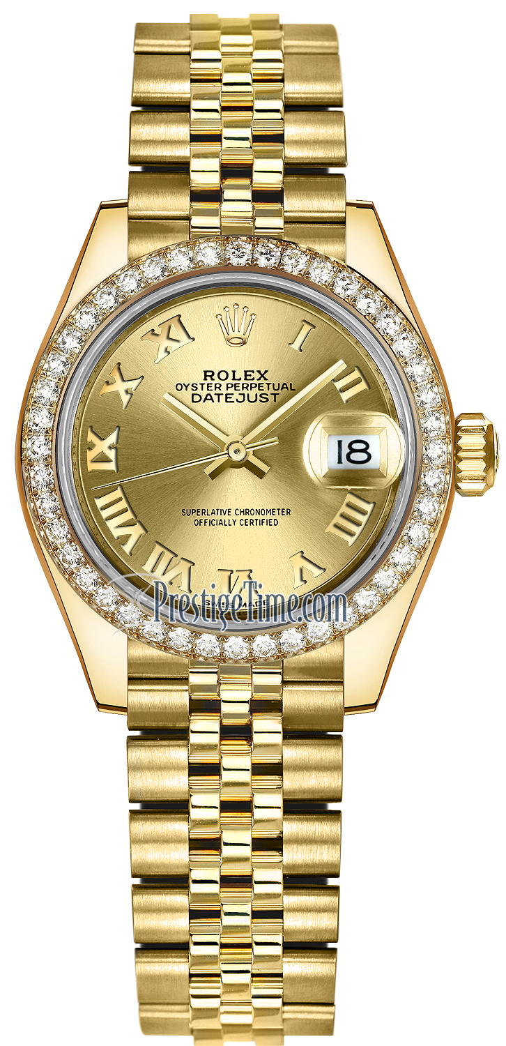 Ladies Rolex 279138RBR Champagne Roman Jubilee Lady Datejust 28mm Yellow Gold Watch