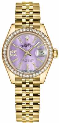 Ladies Rolex 279138RBR Lilac 44 Diamond Jubilee Lady Datejust 28mm Yellow Gold Watch