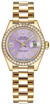 Ladies Rolex 279138RBR Lilac 44 Diamond President Lady Datejust 28mm Yellow Gold Watch