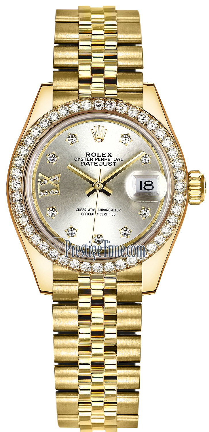 Ladies Rolex 279138RBR Silver 17 Diamond Jubilee Lady Datejust 28mm Yellow Gold Watch