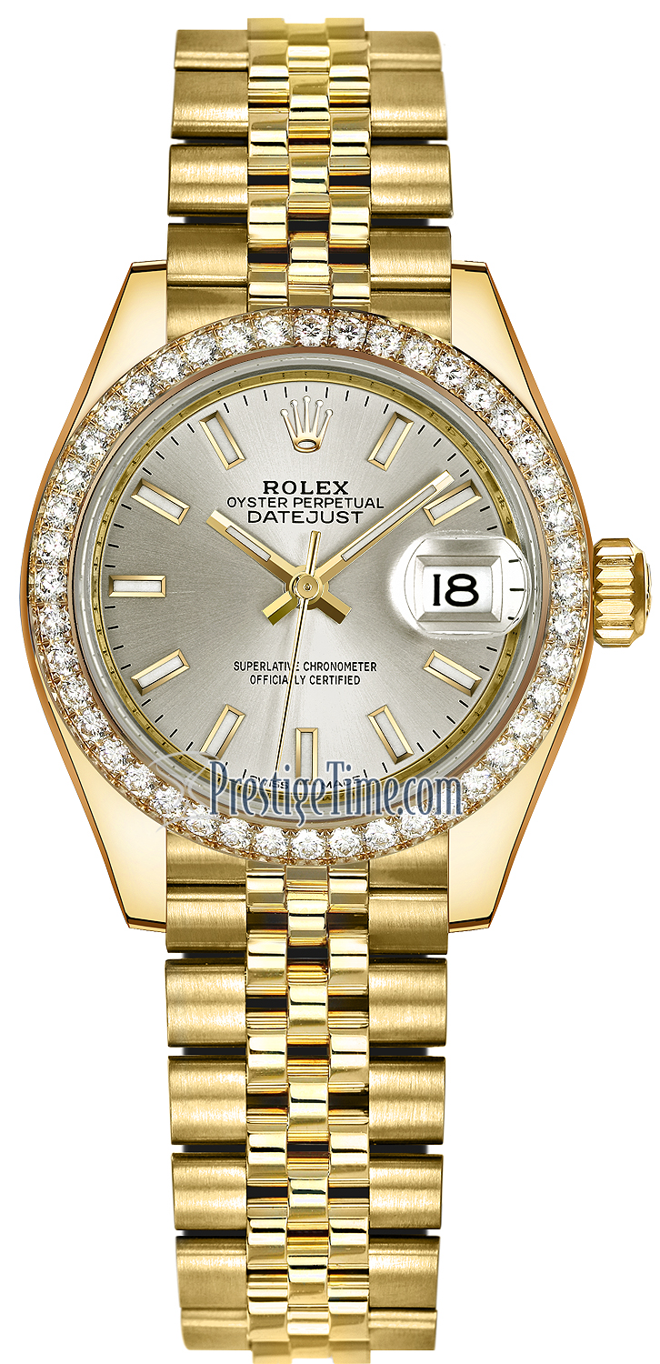 Ladies Rolex 279138RBR Silver Index Jubilee Lady Datejust 28mm Yellow Gold Watch
