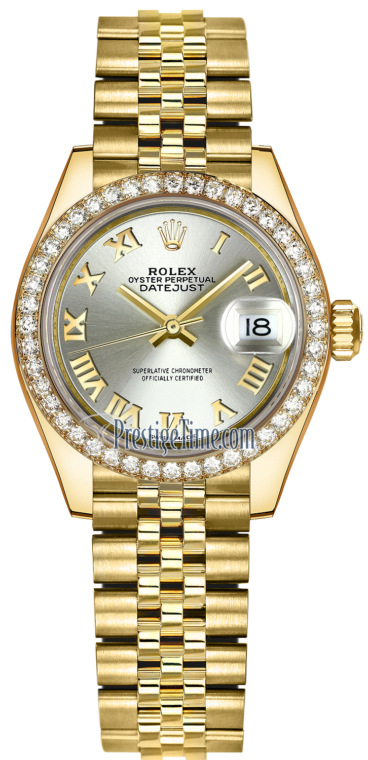 Ladies Rolex 279138RBR Silver Roman Jubilee Lady Datejust 28mm Yellow Gold Watch