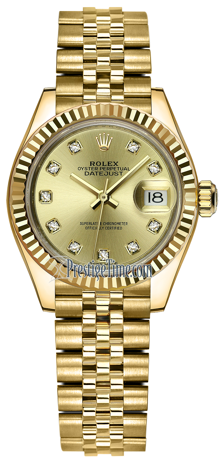 Ladies Rolex 279178 Champagne Diamond Jubilee Lady Datejust 28mm Yellow Gold Watch