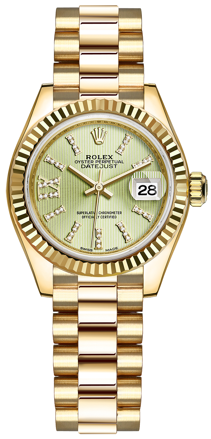 Ladies Rolex 279178 Linden Green 44 Diamond President Lady Datejust 28mm Yellow Gold Watch