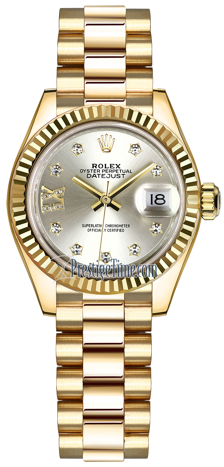 Ladies Rolex 279178 Silver 17 Diamond President Lady Datejust 28mm Yellow Gold Watch
