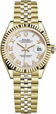 Ladies Rolex 279178 White Roman Jubilee Lady Datejust 28mm Yellow Gold Watch