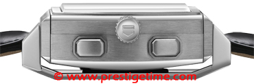 • The 2nd Side Features a High-Quality Quartz Movement with a digital display on a black background. This watch features: Time, Date, Alarm Function, 2nd time zone, Only wrist Stop Watch in the world that measures up to 1/1000th of a second increments, F1 timing, Best lap, Backlight.