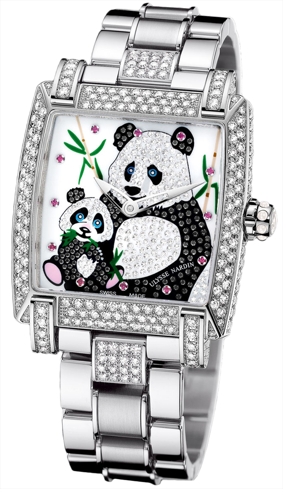 • Pave diamond dial features 2 pandas made of 426 diamonds, weighing 1.305 carats.