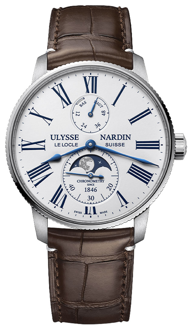 • Ulysse Nardin in-house manufactured caliber UN-119, beats at 28,800 vph (4Hz), contains 45 jewels & has an approximate power reserve of 60 hours. The movement features a DIAMonSIL escapement wheel & anchor.