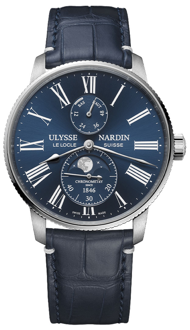 • Ulysse Nardin in-house manufactured caliber UN-119, beats at 28,800 vph (4Hz), contains 45 jewels & has an approximate power reserve of 60 hours. The movement features a DIAMonSIL escapement wheel & anchor.