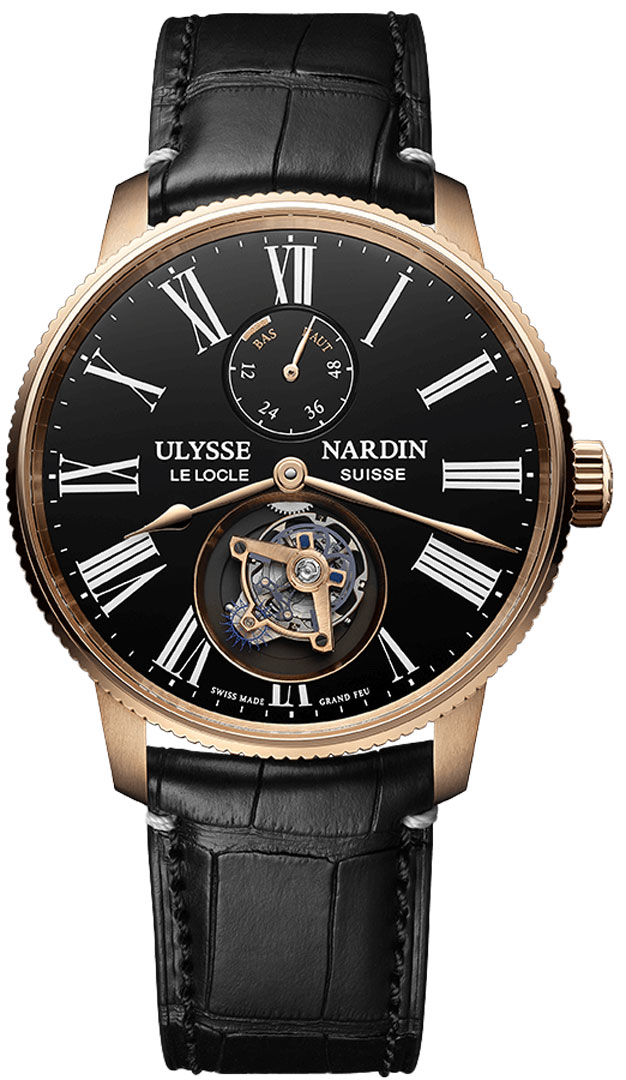 • Ulysse Nardin in-house manufactured caliber UN-128 Constant, beats at 18,000 vph (2.5Hz), contains 36 jewels & has an approximate power reserve of 60 hours. The movement features a Anchor escapement with blade technology. Silicium escapement wheel, balance spring & anchor.
