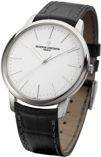 • Silvered (galvanized sunburst finish) dial with 18kt White Gold hands & index hour markers.