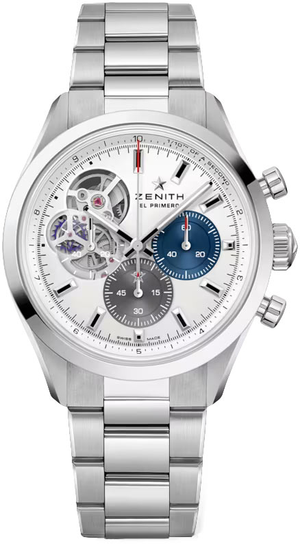 • Zenith in-house caliber El Primero 3604, beats at 36,000 vph (5Hz), contains 35 jewels & has an approximate power reserve of 60 hours.
