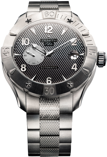 • Bold looking bezel with engraved numbers on raised raised blocks & raised stars (from the Zenith logo) & indexes.