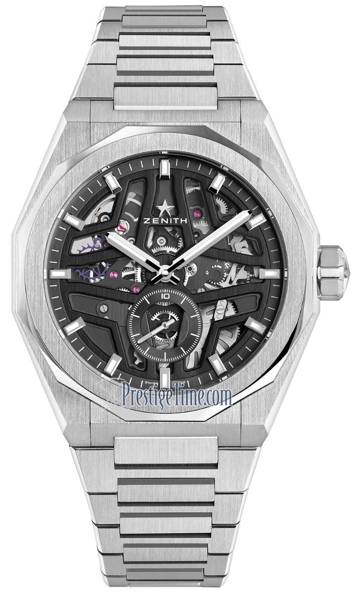 • Zenith El Primero Caliber 3620, beats at 36,000 vph, composed out of 228 parts, & has an approximate power reserve of 60 hours.