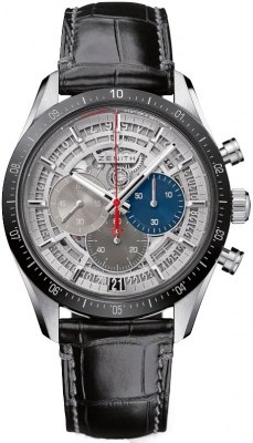 • Zenith caliber El Primero 3600 features: stop-seconds, beats at 36,600 vph (5Hz), contains 35 jewels & has a power reserve of approximately 60 hours.
