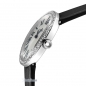 • Silver sunray dial with painted black Roman numerals and blue sword-shaped hands.
