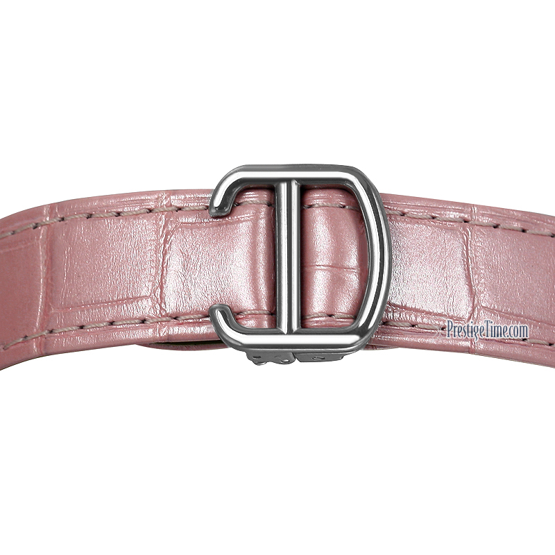 • Pink alligator strap with 18kt white gold deployant buckle
