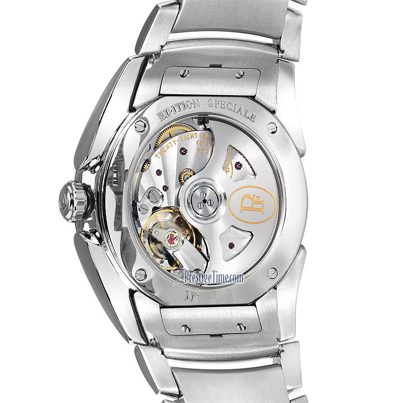 • Parmigiani Caliber pf310, beats at 28,800 vph, composed out of 189 parts, contains 28 Jewels & has an approximate power reserve of 50 hours.