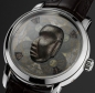 This watch bears a Mexican Pendant Mask - State of Guerrero, Mazcala Culture. Blending the influences of several cultures in a singular style, this pendant mask conveys all the artist's virtuosity. Its powerful and austere profile comprises both abstract and naturalistic features. The upper part of the face and the diagonal of the cheek are treated in a minimalist fashion; by contrast, the aquiline nose and down-turned mouth seem far more realistic. This mask belongs to the Mezcala culture. During the classical period, it was the custom of these people to bury their dead under the mud floors of their dwellings. In accordance with a ritual related to the ancestral worship of the dead, the tombs were full of small hard-stone sculptures of asexual human figures, heads, plaques decorated with faces, masks, and animal effigies.