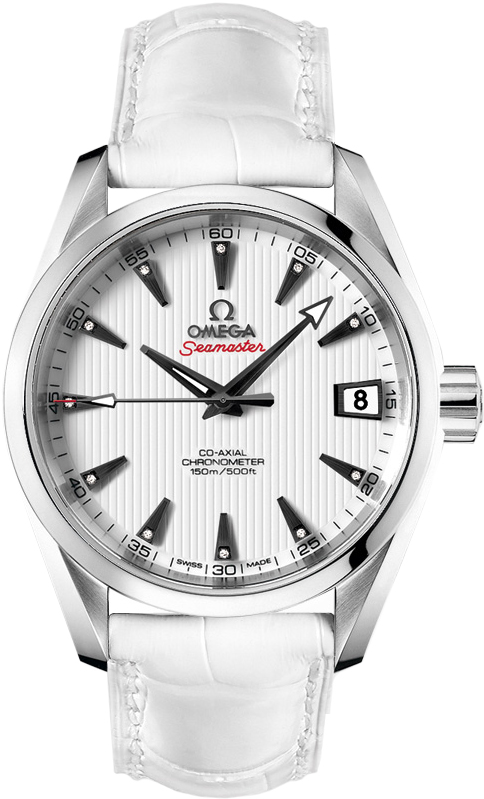 • White dial with a vertical linear textured design.