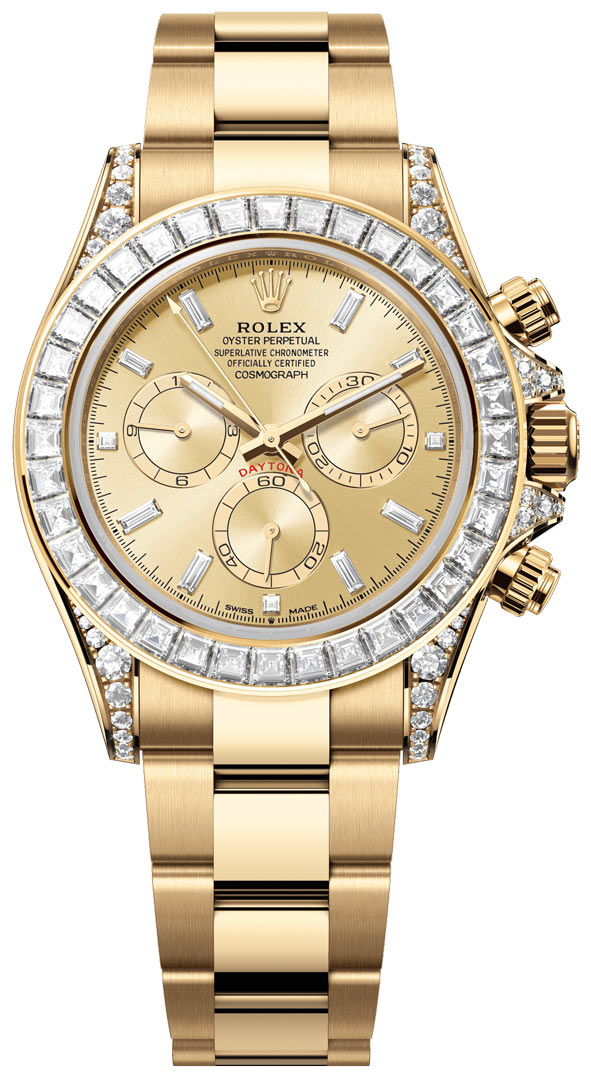 Mens Rolex 126598TBR Golden Baguette Cosmograph Daytona Yellow Gold Watch