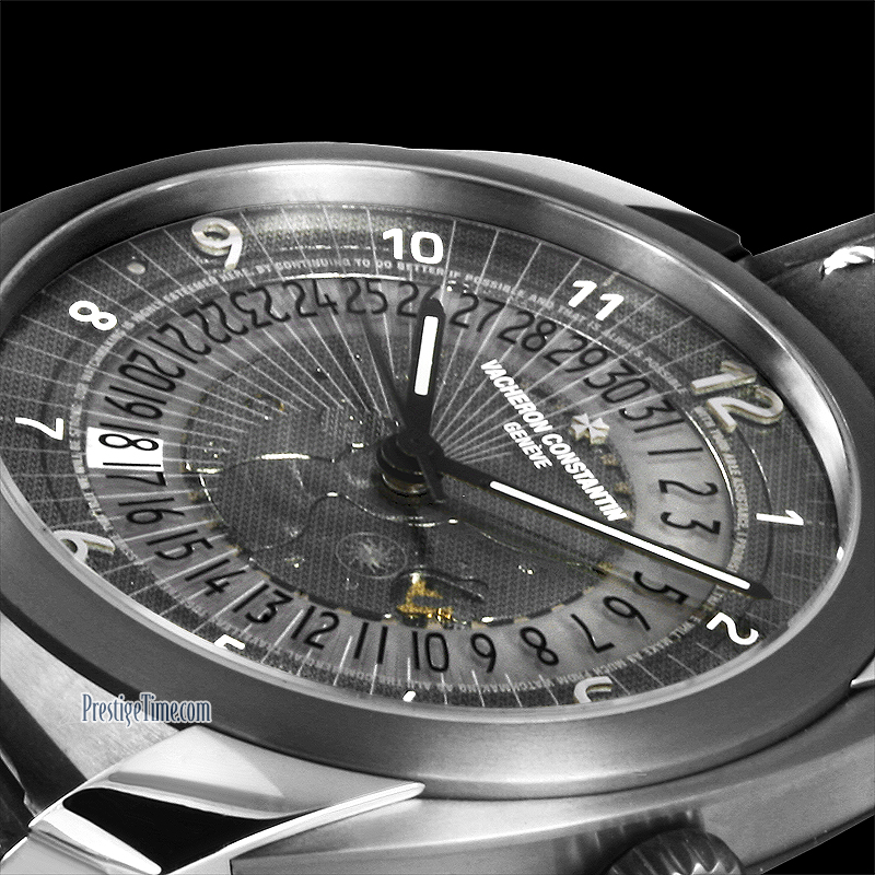 • A process called "Metallization" is sprayed onto the surface of the dial with a fine deposit of white gold to form micro-text around the date numbers. The micro-text is a translated extract from a letter sent  from Italy by François Constantin in July 1819 to his friend & associate Mr. Jaques-Barthélémy Vacheron: