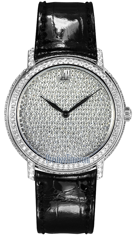 • Case edge, bezel, lugs pave set with 251 brilliant cut round diamonds weighing a total of approximately 2.28 carats.