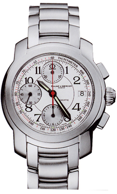Polished Stainless steel case, White dial with silver subdials , Black Arabic numerals, Displays date at 3.