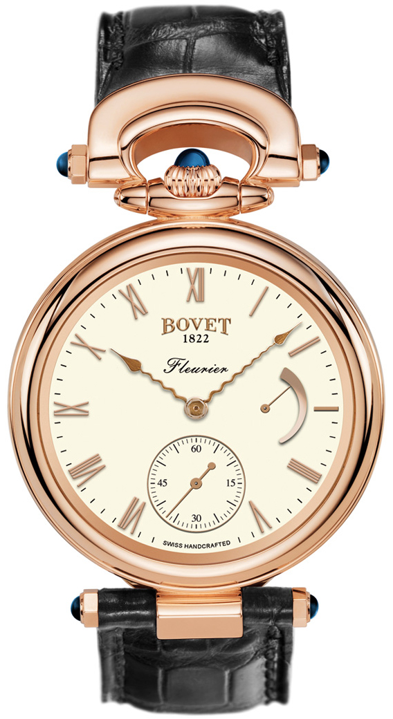 The over-sized bow around the crown at the 12 o'clock position is a distinct BOVET characteristic, reminiscent of the pocket watches from the 19th century. The proportions of the bow has been increased, from its original purpose as a chain attachment, to accommodate the width of a full sized strap & doubles as a crown protector.