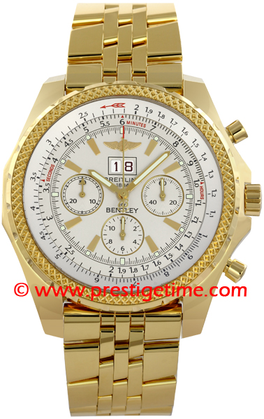 This distinctive model with it's criss-crossed engraved bezel is worthy of its affiliation with the Bentley name. Silver Dial with Silver toned/Luminous Hands & index Hour Markers. Other Features: Chronograph/Stop watch functions. Fitted with the "Slide Rule" aka "Navigation Computer" which allows to compute different airborne calculations such as fuel consumption, climbing times & converting miles into nautical miles or kilomters. Double Window Large Date Displayed directly beneath the 12 o'clock position. Special Decorated Case-back has been Stamped/Embossed with the distinct shape & outline of a Bentley Rim.