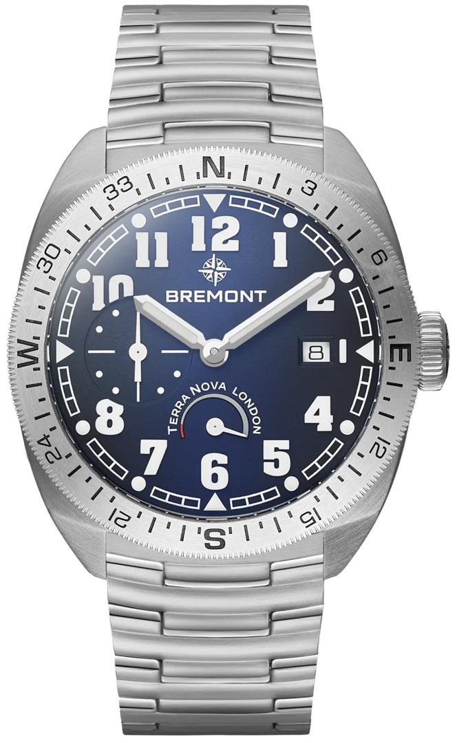 Mens Bremont TN40-PWR-SS-BL-B Terra Nova 40.5 Turning Bezel Power Reserve Watch