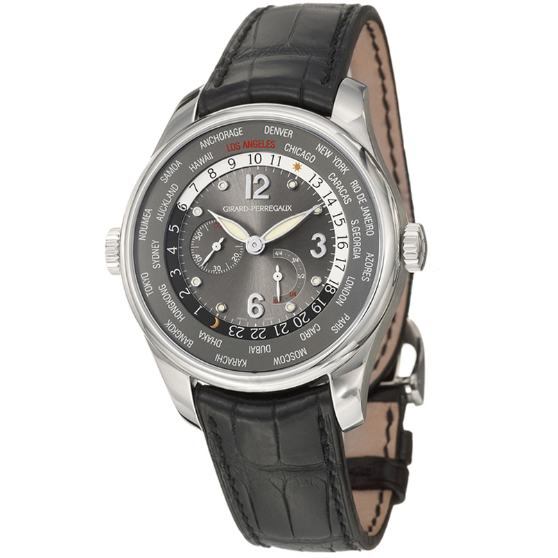 LIMITED & NUMBERED EDITION OF 60 PIECES WORLDWIDE! The LOS ANGELES edition features LOS ANGELES as the home-time printed in red on the world-timer ring. With the GP emblem/logo printed on the case back crystal & also engraved on the movement.